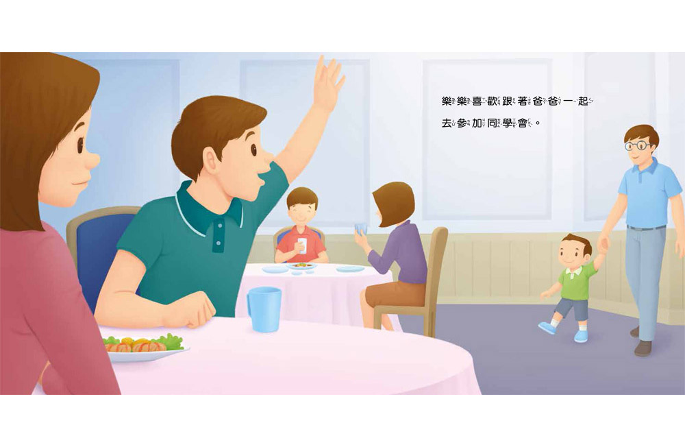 樂樂開心的跟著爸爸去參加同學會,