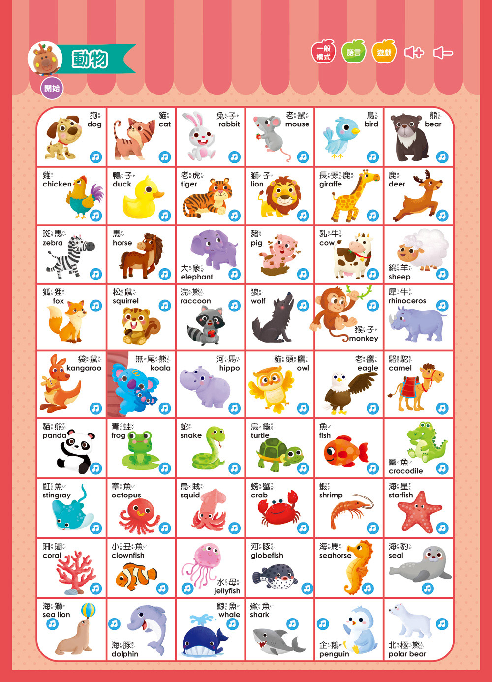 【中、英、台三種語言發音,奠定語言基礎】