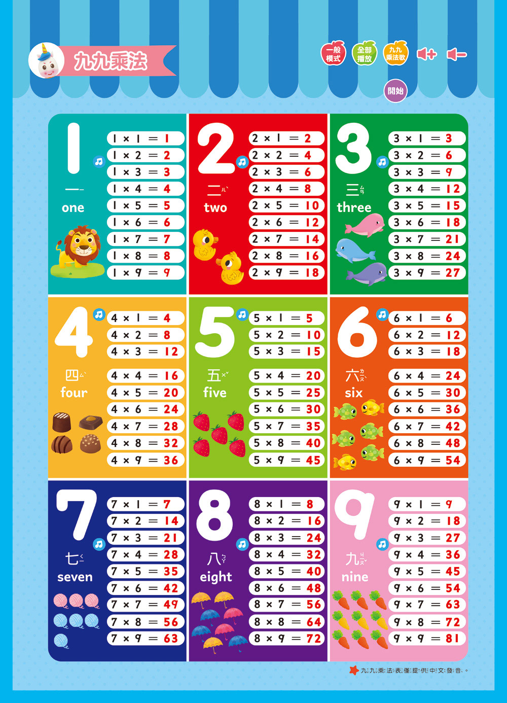 九九乘法、兒歌+鋼琴