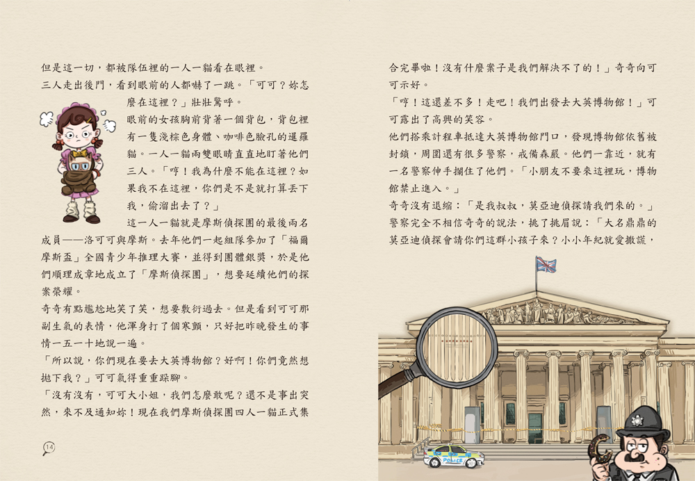 由奇奇一行人組成的摩斯偵探團,在大偵探莫亞迪叔叔的帶領下,進入大英博物館展開調查。
